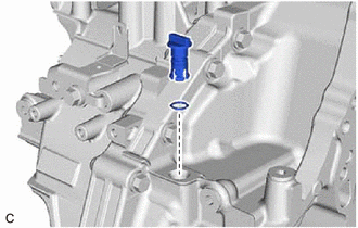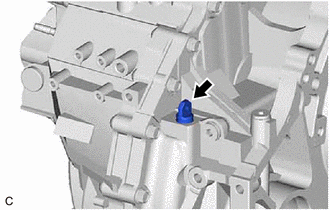 | (a) Remove the transmission case plug assembly from the transaxle housing. |