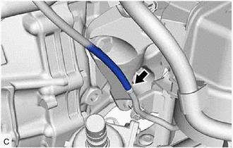 | (a) Disengage the 2 clamps to remove the transmission breather clamp. |