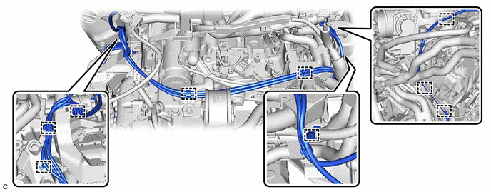 | (j) Disengage the 3 wire harness clamps to disconnect the wire harness from the automatic transaxle assembly. |