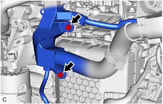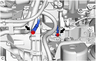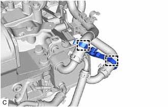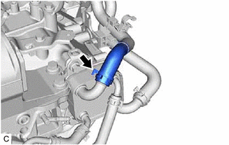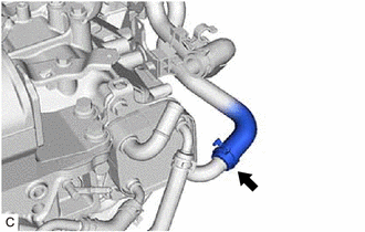 | (b) Disengage the clamp to disconnect the water by-pass hose assembly from the automatic transaxle assembly. |