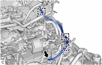 | (a) Disengage the 3 hose clamps to disconnect the breather plug hose. |