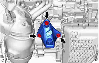 | (a) Remove the 3 bolts and front engine mounting bracket from the transaxle housing. |