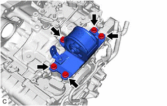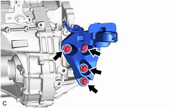 | (a) Remove the 4 bolts and rear engine mounting bracket sub-assembly from the transaxle housing. |