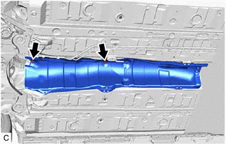 | (d) Remove the 2 nuts and then remove the transmission control cable assembly from the vehicle body. |