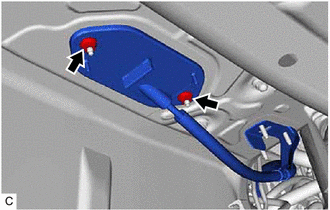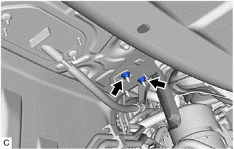 | (a) Remove the 2 nuts and front lower No. 1 floor heat insulator from the vehicle body. |