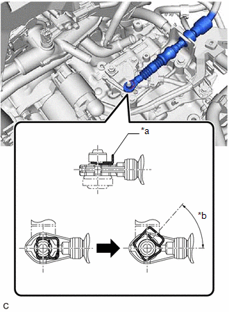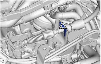 | (a) While disengaging the clip as shown in the illustration, disconnect the transmission control cable assembly from the transmission control shaft lever together with the clip. |