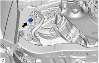 | (b) Using a 10 mm hexagon socket wrench, remove the overflow plug and gasket from the transaxle housing. |