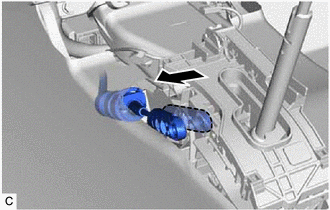 (f) Disengage the clamp to disconnect the wire harness from the transmission floor shift assembly.