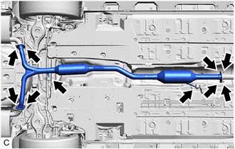 | (a) Remove the 6 bolts, 2 nuts and disconnect the center exhaust pipe assembly from the front exhaust pipe assembly (TWC: Rear Catalyst), tail exhaust pipe assembly and tail exhaust pipe assembly LH. |