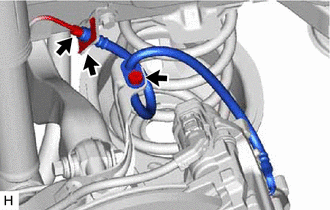 (d) Remove the clip and rear flexible hose from the vehicle body.