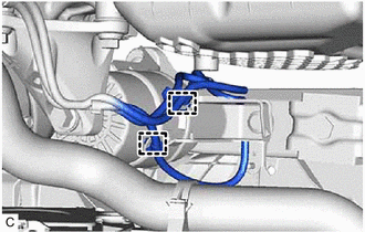 | (a) Disengage the 2 clamps to separate the vacuum hoses from the front engine mounting insulator. |