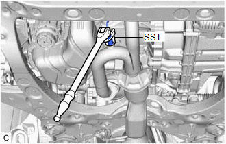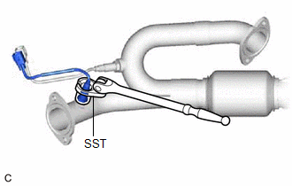 | (a) Using SST, remove the heated oxygen sensor from the front exhaust pipe assembly (TWC: Rear Catalyst). SST: 09224-00012 NOTICE: If the heated oxygen sensor has been struck or dropped, replace it. |
