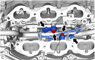 | (a) Disconnect the 2 knock control sensor connectors. | | | *A | for Bank 1 | | *B | for Bank 2 | | |
