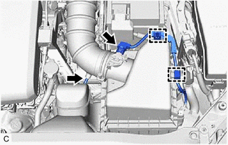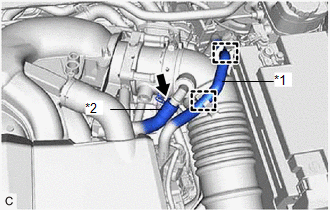 | (d) Disengage the 2 clamps to disconnect the No. 1 fuel vapor feed hose from the air cleaner hose. |