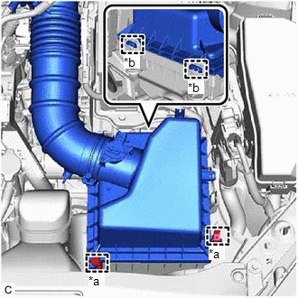 | (f) Disengage the 2 air cleaner cap clamps. |