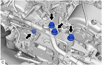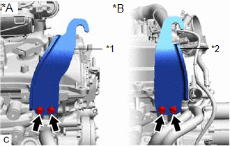 (a) Remove the 4 bolts, No. 1 engine hanger and No. 2 engine hanger from the cylinder head sub-assembly and cylinder head LH.