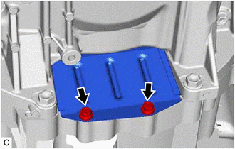| (a) Remove the 2 bolts and flywheel housing under cover. |