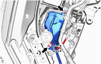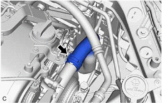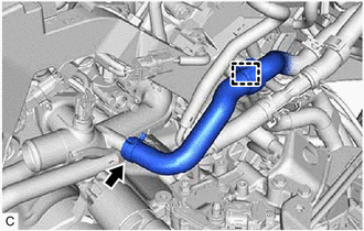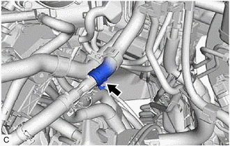 (b) Slide the clip and disconnect the inlet heater water hose from the water outlet.