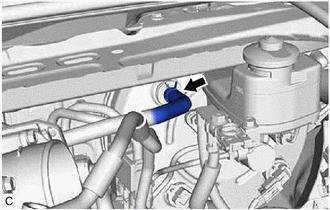 | (a) Slide the clip and disconnect the union to check valve hose from the brake booster assembly. |