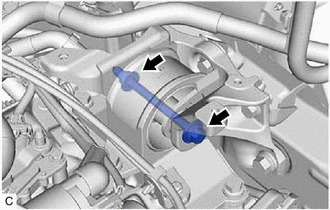 | (a) Remove the bolt and separate the front engine mounting insulator from the front engine mounting bracket. |