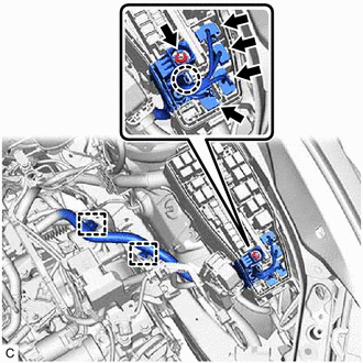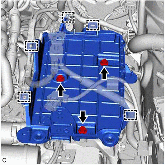 | (a) Disengage the 5 clamps from the battery clamp sub-assembly. |