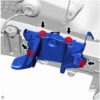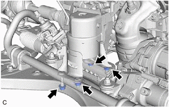 | (b) Remove the 4 nuts and separate the rear engine mounting insulator from the front frame assembly. |