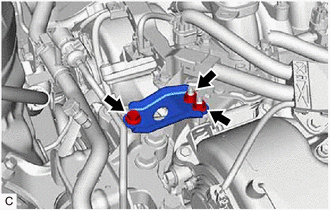 | (c) Remove the 3 bolts and nut and separate the engine mounting insulator sub-assembly RH from the front No. 1 engine mounting bracket LH. |