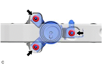| (a) Remove the 3 nuts and front engine mounting insulator from the front frame assembly. |