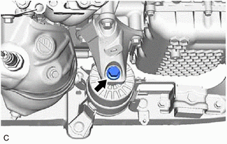 | (a) While disengaging the clip as shown in the illustration, disconnect the transmission control cable assembly from the transmission control shaft lever together with the clip. |