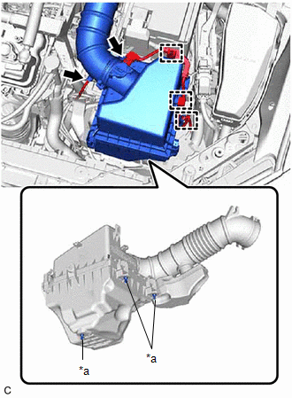| (a) Remove the 2 bolts and inlet air cleaner assembly. |