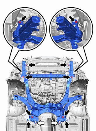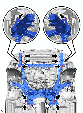 (2) Remove the 4 bolts, 2 nuts and front suspension member bracket sub-assembly RH and front suspension member bracket sub-assembly LH from the front frame assembly and vehicle body.