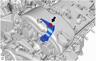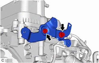 | (a) Remove the 2 bolts and water filler bracket from the camshaft housing sub-assembly LH. |