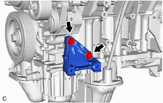 | (a) Remove the 2 bolts and No. 1 compressor mounting bracket from the cylinder block sub-assembly. |