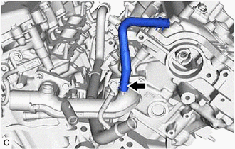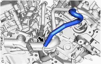 | (a) Slide the clip and remove the No. 2 water by-pass hose from the water outlet. |