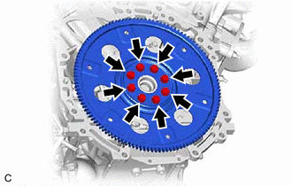 | (c) Remove the 8 bolts, the rear drive plate spacer, the drive plate and ring gear sub-assembly. |