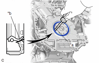 | (a) Using a knife, cut through the lip of the rear engine oil seal. |