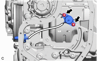 | (b) Remove the 2 nuts and engine oil level sensor from the oil pan sub-assembly. |