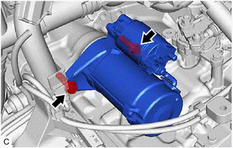 | (a) Disconnect the starter assembly connector. |