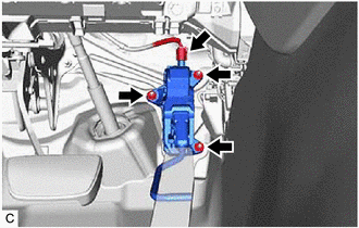 (b) Remove the 3 nuts and disconnect the rod of the accelerator pedal sensor assembly from the accelerator pedal assembly to remove the accelerator pedal sensor assembly.
