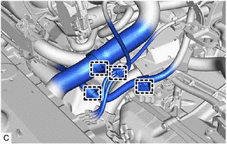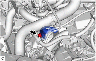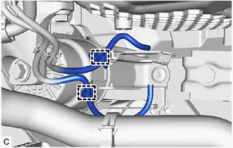 | (c) Disengage the 2 clamps to separate the vacuum hoses from the front engine mounting insulator. |