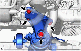 | (f) Remove the 4 bolts and front engine mounting bracket. |