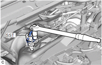 | (c) Using SST, remove the air fuel ratio sensor from the exhaust manifold (TWC: Front Catalyst). SST: 09224-00012 NOTICE: If the air fuel ratio sensor has been struck or dropped, replace it. |