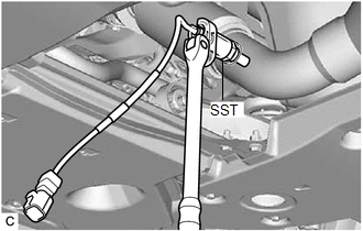 | (c) Using SST, remove the air fuel ratio sensor from the front exhaust pipe assembly (TWC: Rear Catalyst). SST: 09224-00012 NOTICE: If the air fuel ratio sensor has been struck or dropped, replace it. |