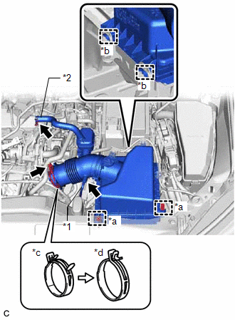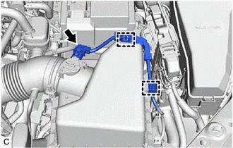 | (c) Disconnect the vacuum hose from the air cleaner hose. |