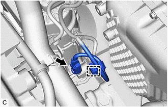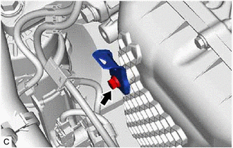 | (c) Disengage the wire harness clamp and disconnect the vacuum switching valve (for active control engine mount system) connector. |