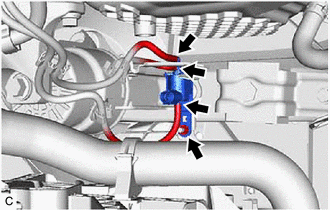| (d) Disconnect the 3 vacuum hoses from the vacuum switching valve (for active control engine mount system). |
