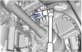 | (b) Using a 24 mm deep socket wrench, remove the oil pressure and temperature sensor. NOTICE: If the oil pressure and temperature sensor is dropped or subjected to a strong impact, replace it with a new one. | |