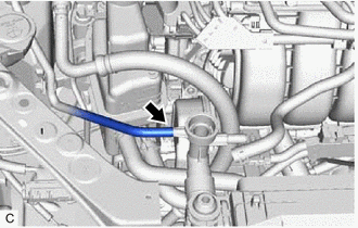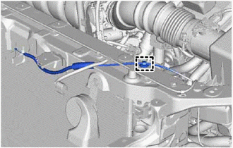 | (a) Disengage the clamp to disconnect the hood lock control cable assembly from the upper radiator support sub-assembly. |