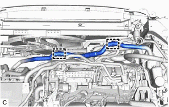 | (a) Disengage the 2 clamps and disconnect the No. 5 inverter cooling hose from the fan with motor assembly. |