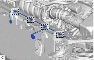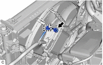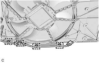 | (a) Disengage the 4 clamps to disconnect the wire harness from the fan with motor assembly. |